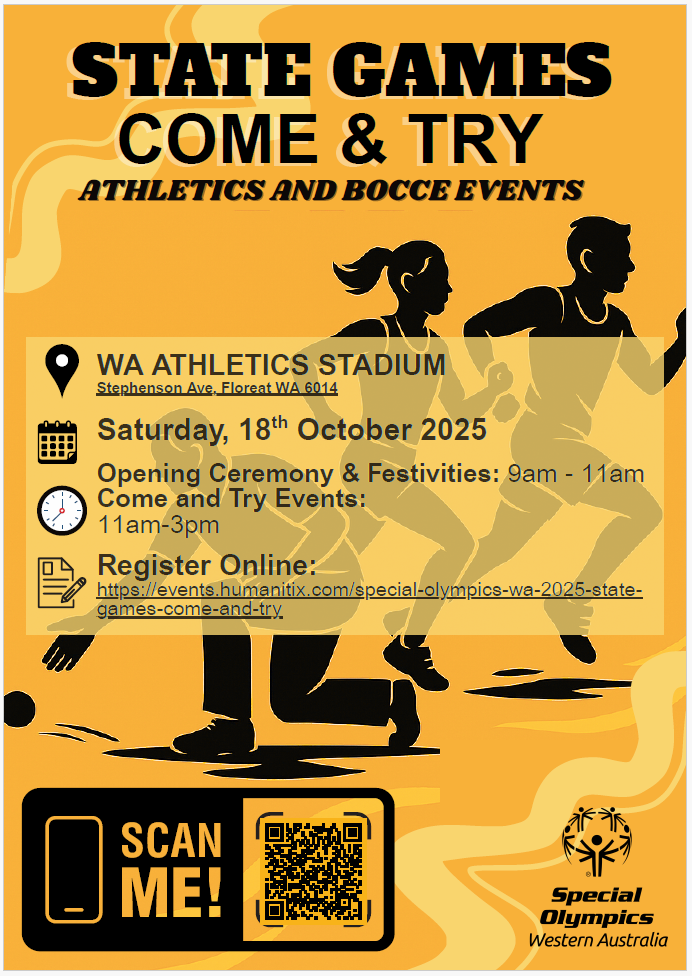 If you are free, stay from 1100-1500 and join in on the Come and Try events for Bocce and Athletics.